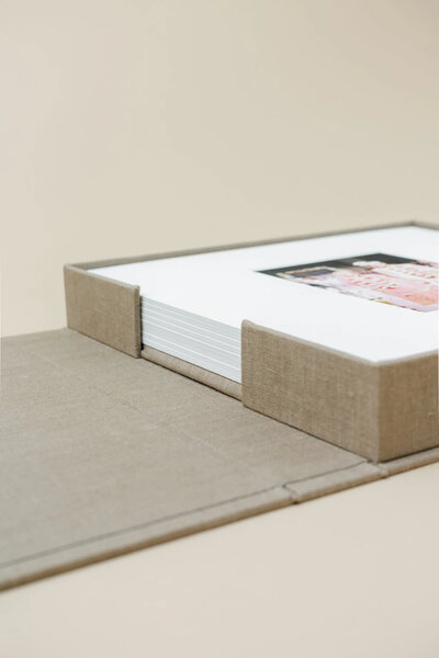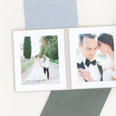 Custom Albums begin at $1520 and hold at least 10 spreads (20 pages). This holds around 30-40 images and are covered in your choice of a hand-crafted cover. Offered in Linen, Leather or Suede.